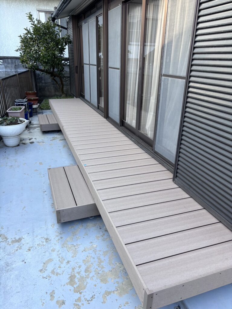 名古屋市K様邸ウッドデッキ改修工事 2026-01-10 2026-03-03 施工事例 #ウッドデッキ#名古屋市#外構工事#改修工事#新設工事#解体工事 いつも大変お世話になっております。以前にも使っていただいたお客様からのご依頼にて、木フェンス及びデッキの解体→人工木デッキの新設工事をやらせていただきました✨写真を見ても分かるように木材が腐ってしまって、ビスもほとんど効いていない状態でした💦ご高齢のお客様の為、普段の使用に危険が伴うとの事で息子様からご相談を頂きました😌最近は、リピートして頂けるお客様が増えて嬉しい限りです🙇🏻この度は御用命いただき誠にありがとうございました。 施工事例 #ウッドデッキ#名古屋市#外構工事#改修工事#新設工事#解体工事